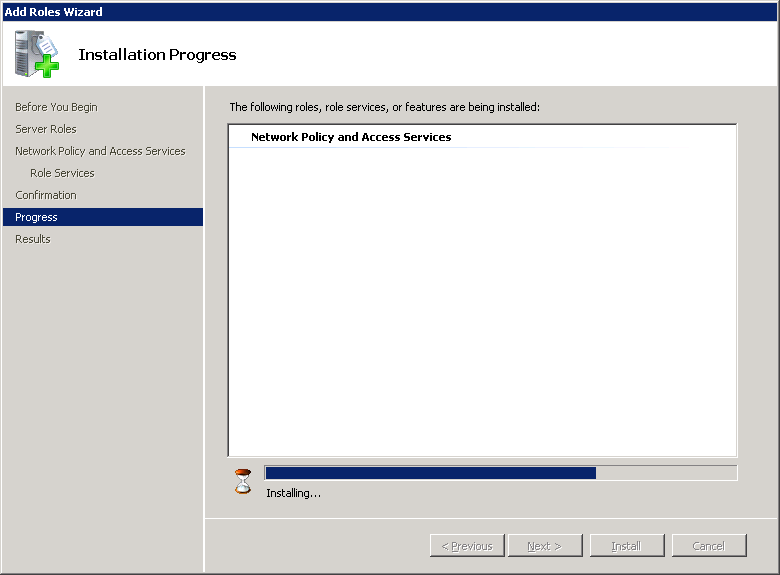 The Network Policy server is now installed. In the next part we’ll install a computer certificate that we can use to authenticate the RADIUS server to the wireless clients.